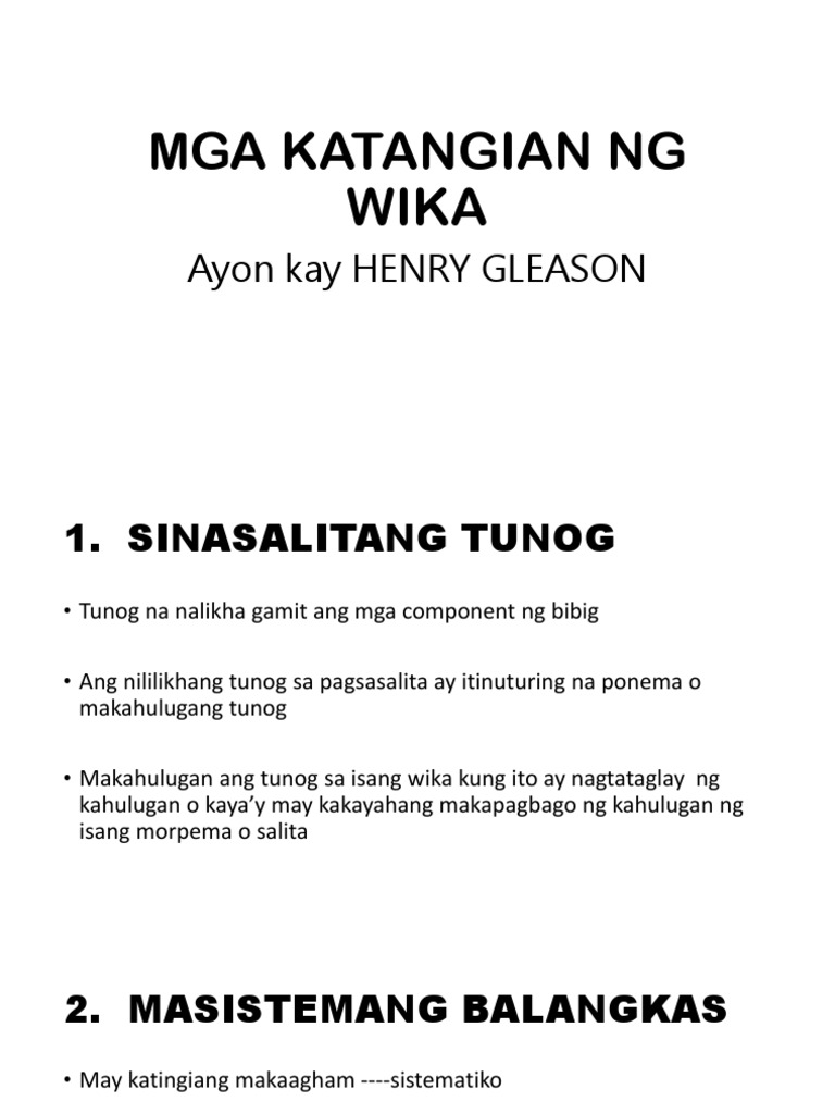 Pero ano nga ba ang mga katangian ng mga. Subalit hindi lahat ng tunog ay wika sapagkat hindi lahat ng tunog ay may kahulugan. Sa madaling salita ang wika ang kaisipan ng isang bansa kayat kailanman itoy tapat sa pangangailangan at mithiin ng sambayanan.