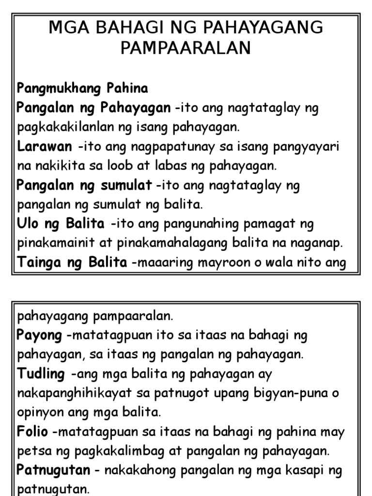 Mga Bahagi Ng Pahayagan At Kahulugan Nito Pdf