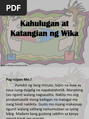 Ito ay mga kwentong naipasa sa satin ng mga sinaunang Pilipino. Sa pag-alam din ng katangian mas mauunawaan ang gamit nito kung paano nabubuo ang mga pangungusap gamit ang wika kung paano ito sumasailalim sa pagbabago at paano bibigyan ng. Ang wika ay kaugnay ng kultura.