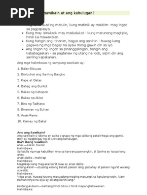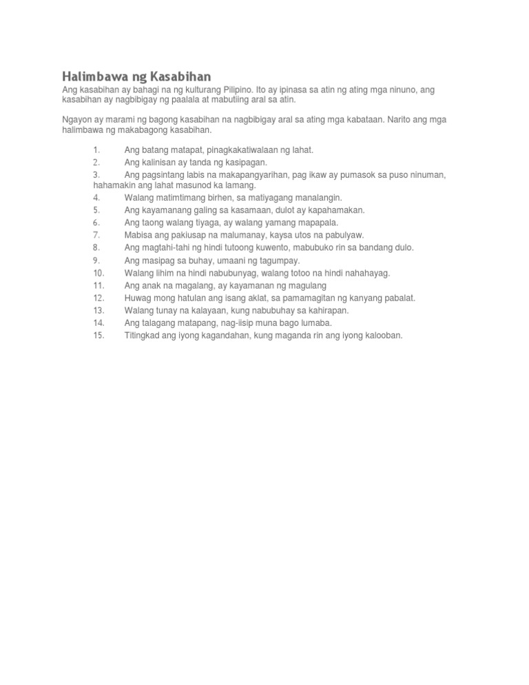 Halimbawa Ng Sawikain At Ang Kahulugan